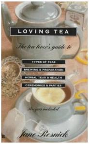 One of my favorite times of the week is my visit to the local public library. I feel rich at the vast choices of books, and being able to take as many as I like without worrying about cost (as long as I return them on time, I am notorious for the late fees I tend to rack up). I feel like I can learn anything or do anything. While I largely use the library for novels, I decided to take a gander at the nonfiction section to see if there were any books on tea. In fact there were, including two that I hadn’t heard of. One will remain unnamed for now, and the other is Loving Tea by Jane Resnick. A quite broad book, I found it to be a most delightful read.