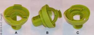 B – Main cap with hole cover/handle up