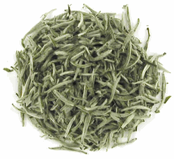 Silver Needle: Silver needle is the original white tea, and is made up entirely of white, fuzzy buds. This tea should be prepared with relatively cool water (I usually go with water between 165-170F), ideally in a glass teapot (the buds stand on end after being infused for awhile, which is great fun to watch). The flavor is usually extremely subtle: It may even taste like you are drinking plain hot water at first. Pay attention, though. The sweet, delicate flavor of the tea will eventually emerge.