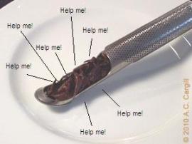 Do you remember the original version of the Sci-Fi horror flick “The Fly”? Not the gross-out version with Jeff Goldblum and Geena Davis, but the more tame but still scary version with David Hedison and Vincent Price. Hedison played a scientist who was trying to transport objects using a new electronic device and decided to use himself as a test subject. Unfortunately for him, but fortunately for the audience (it would have been a pretty dull movie otherwise), a fly got into the transporter with him. What came out the other end was a man’s body with a fly’s head (and a fly’s arm) and a fly with a man’s head (and a man’s arm, of course). At one point, Price, giving up from trying to undo the mess his friend has gotten into, sits on a bench outside the lab where all this happened and hears a tiny voice saying, “Heelllppp mmmeeee! Heelllllppppp mmmeeeee!” He looks over and sees a spider web. Ensnared in the web, with the spider bearing down on it, is a fly with a white head on it. A closer look reveals that the white head is Hedison, hair turned white with fright. Knowing he can’t save the fly, Price smashes it with a rock just as the spider reaches it.