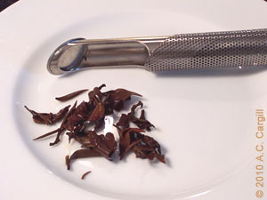 The really fine teas, like Tie Guan Yin, Snow Dragon, or Imperial Formosa Oolong, plump up in the water to 4 or 5 times the size they are when dry. Imagine if a bunch of skinny people got on an elevator to go up to the 30th floor and, when the elevator gets there, all those people have expanded to 4 or 5 times their size and now fill that space and more (don’t ask me what made them expand, it’s an imperfect metaphor). When the elevator doors opened, they’d all be saying, “Heelllppp mmmeeee! Heelllllppppp mmmeeeee!” in tiny voices (because they wouldn’t have enough air and room to say it loudly).