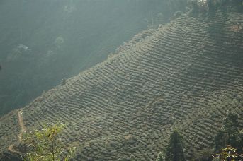 Darjeeling — The terrain is hilly and has several rivers running through it. The climate is often described as close to the climate in the United Kingdom in terms of rainfall, temperature, and humidity. It is also quite suitable for growing tea. There are 87 gardens/estates in active production, cranking out 9 to 10 million kilograms every year. The growing season is March through November. Harvest times are “Spring” (March, April), “Summer” (May to mid-July), “Monsoon” (mid-July to September), and “Autumn” (October, November), each imparting its own characteristics to the tea flavor. The flavor can also vary by estate.
