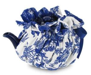 Thus the importance of the problem of how to keep the tea in your pot warm. What’s cozy about a room-temperature pot of tea? There are always tea warmers, usually comprised of little stands that fit a “tea candle” inside them with your teapot sitting above the candle’s flame. Some tea aficionados think these “overcook” the tea, especially as the amount in the pot gets low.