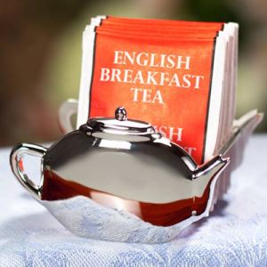 Silver teawares have been around for centuries. Antique silver pieces are available here and there. They range from full tea sets, trays (also called salvers), and coffee urns to such accessories as tea balls and spoon-shaped infusers. Silver teapots were often designed in the same styling of those made in porcelain. Such teawares will add a lot of royal sparkle to your teatime and a bit of a stretch to your budget (full tea sets can range from hundreds to thousands of dollars). You could keep your expenditures down to a more realistic level by just adding a touch of silver here and there. From silver-plated teabag holders (you can always use them for something else), sugar tongs, and tea spoons, to a serrated cake server you can add highlights to your teatime that will make you feel like Anna, the Duchess, is pouring you another cuppa while you munch on a finger sandwich.