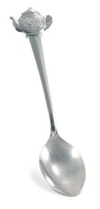 A side note: Spoon collecting began around 1890 in Massachusetts with an enterprising jeweler. He created a sterling silver spoon to commemorate the Salem witch trials. Rather an odd event to make such note of. A more expected event is the American Revolutionary War. A Washington Bicentennial teaspoon was created in 1932. Apostle Spoons, which had handles terminating in heads or busts of the apostles, were popular as christening presents in Tudor times. In modern times, just about every tourist gift shop has collectible teaspoons you can purchase to commemorate your visit.