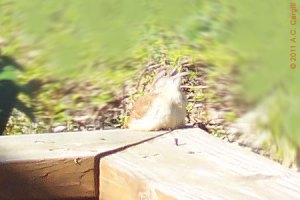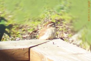 This little warbler’s call sounds like he’s saying “tea kettle, tea kettle, tea kettle”. Luckily — or maybe unluckily, depending on the time of day he chooses to start singing — one of these little cuties has decided to perch on the corner of our deck railing to serenade the avian community. His favorite time seems to be sunup, which, as you know, is earlier and earlier now that we have passed Spring Equinox. (The deck, unfortunately, is right below our master bedroom window.) All will be quiet, and then hubby and I hear “tea kettle, tea kettle, tea kettle” repeated several times. A natural alarm clock.