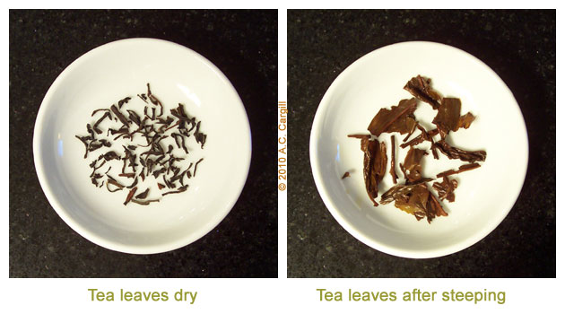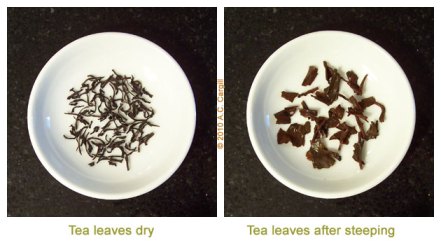 Ceylon Symphony — As musical to your eyes and your taste as a symphony, these broken leaf pieces are rather consistent size, their colors undulating and dark in a rather green hue. They steeped up dark enough and with a strong enough flavor to harmonize with a bit of milk and sweetener.