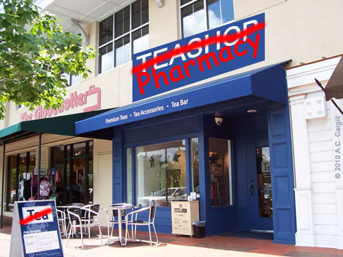 Homeopathy, where you dose yourself with something that somebody swears will help your asthma, clear the congestion from your lungs, help that pizza make its way through your system, improve your hair’s shininess, etc., is really out of the purview of most tea shops. They focus on taste and aroma of teas, endeavoring to bring you a wonderful experience in both.