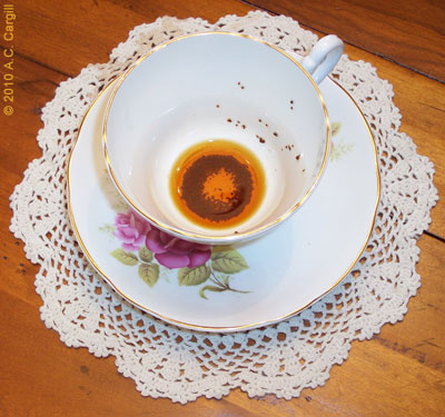 When you are sipping that tea while doing other things (reading, writing, wiping runny noses, etc.), you can lose track of the level of the liquid in your teacup. You sip, set the cup down, then read/write/wipe, then sip again, and so on. If you’re not careful, you run the risk of coming down with empty teacup syndrome.