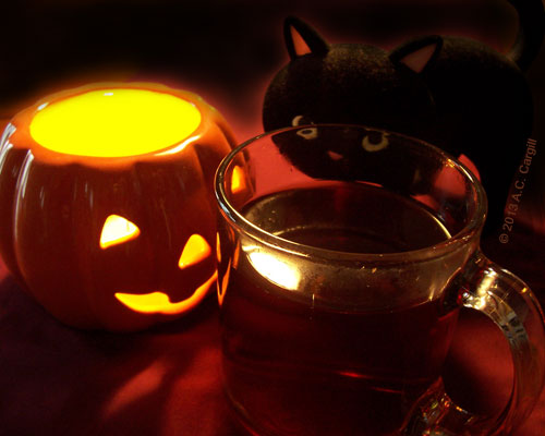 Hubby and I have a fairly low threshold when it comes to scary stuff. So have no fear, the scare factor here is pretty low. About a 1 on a scale of 1 to 10. In fact, it’s so not scary that it’s more on the cute side, as you can see in the photo below. However, for those of you who think The Texas Chainsaw Massacre, Chuckie, A Nightmare on Elm Street (and its sequels), and the Halloween movie series are tame, I present a few tips for a really scary tea time.
