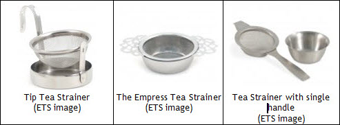 As an aside, we’re only talking about strainers that are placed over a teacup to catch loose tea leaves, not about infusing baskets that go inside the teapot or cup and hold the tea leaves while they infuse. Some designs, however, combine the features so they can be used for both straining and infusing.