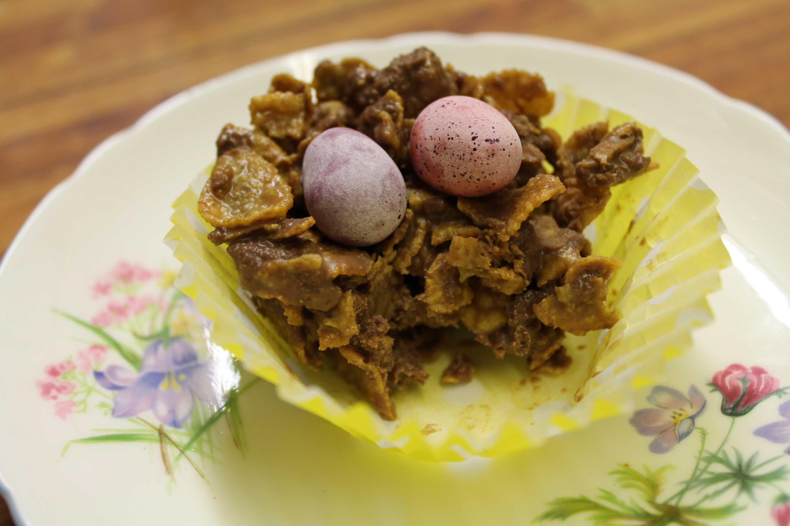 With the end of Lent we have Easter eggs and other such niceties and one of our favourites at this time of the year is Easter nests. They are so easy to make you can even get the children involved, although watch out for things being popped into mouths! My daughter loves to help with these but she like licking the bowls out best of all!