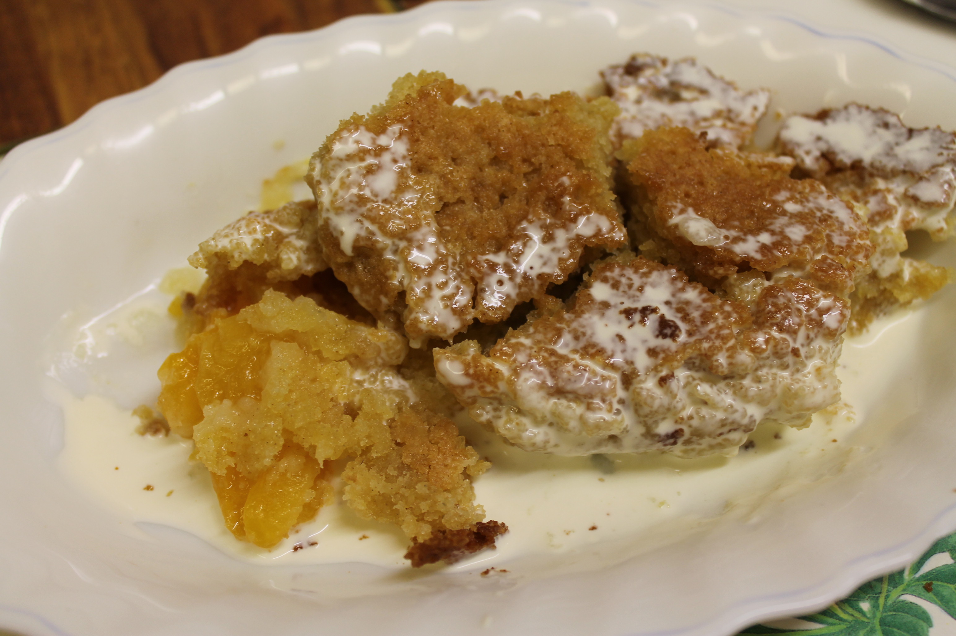 Tomorrow we will publish Julia’s bonus recipe for an apple compote but she also wanted to share this variation, called Eve’s Pudding. She says, “This is delicious with either custard or cream. It also works with rhubarb which is just coming into season! Here is one I made with apricots.”