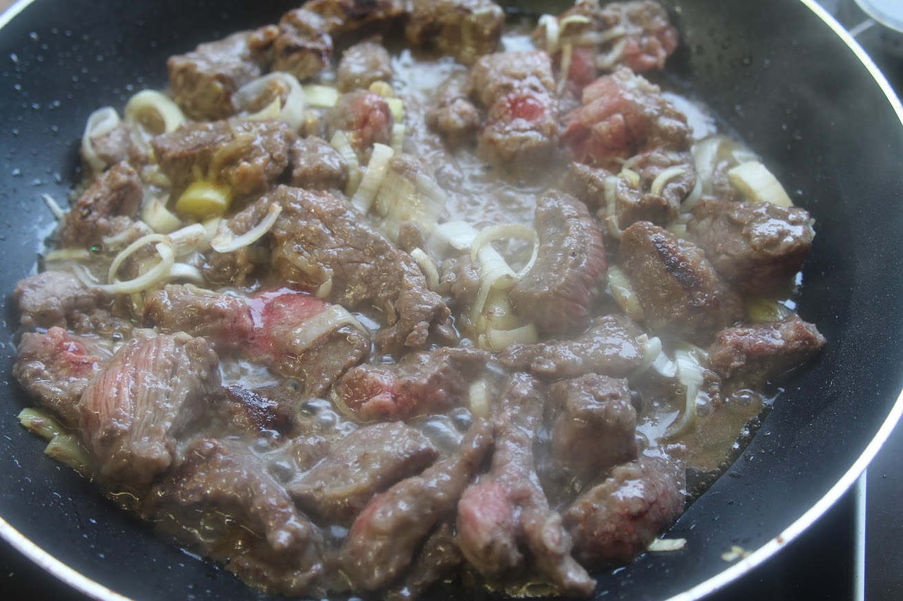 If you are using fresh meat then be guided by the butcher as to how long you need to cook the meat until it is tender. Toss the meat in seasoned flour and fry quickly in hot fat to seal all sides. Add the onion or leek and brown slightly, browning gives a better colour to the gravy.
