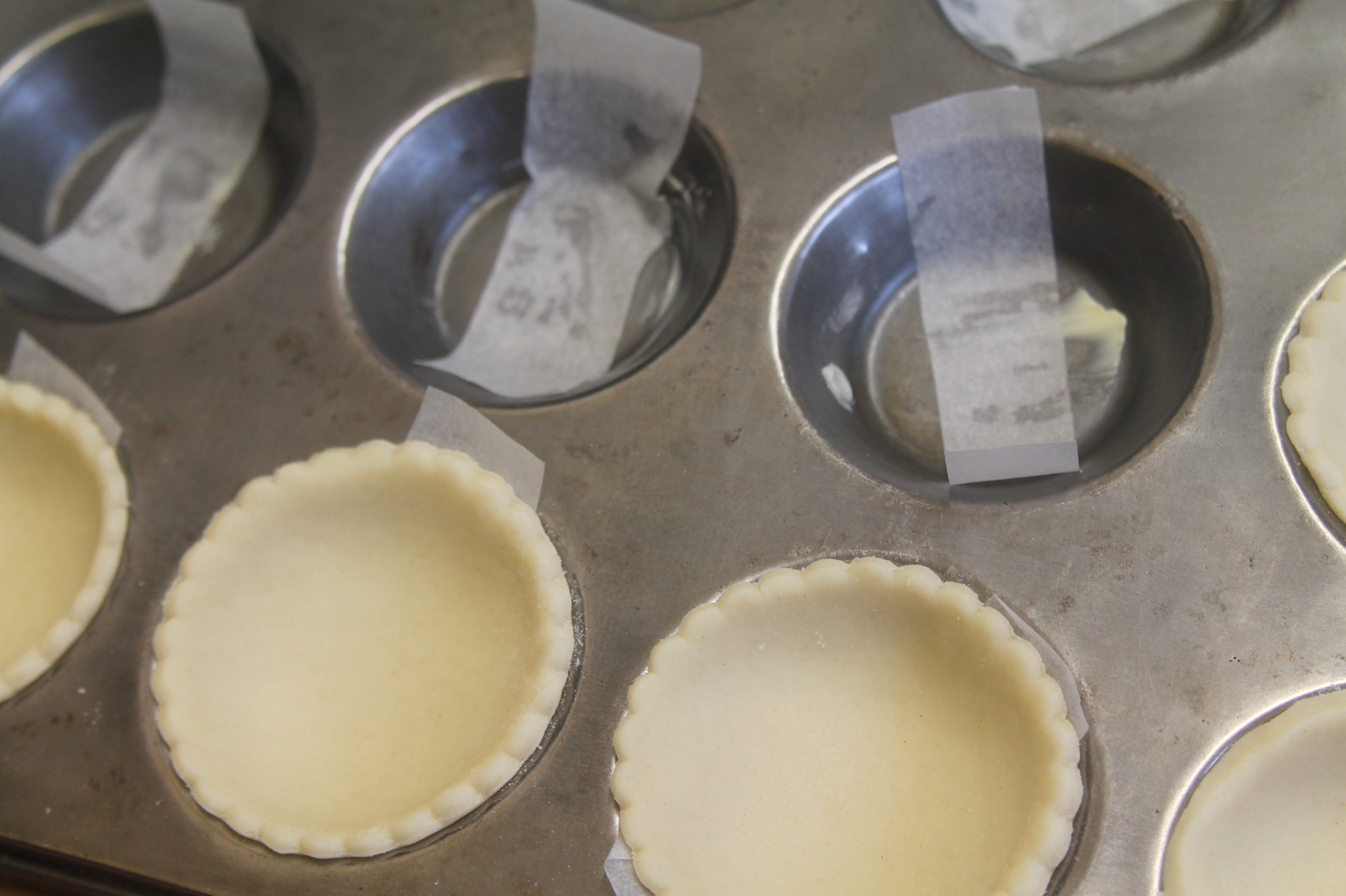 This recipe makes 18 small tarts so an 18-hole tartlet tin greased.