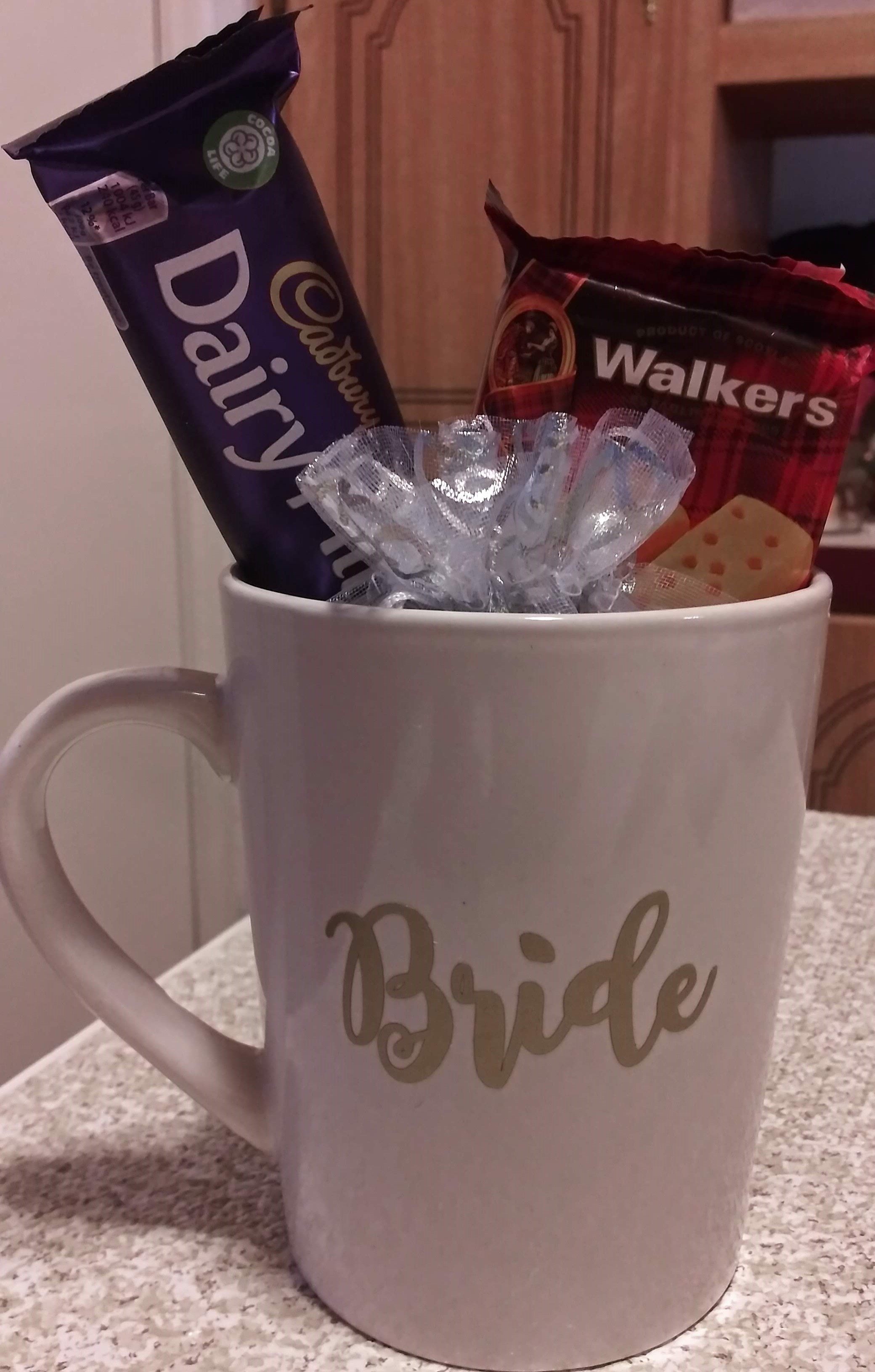 Make goody bags/gifts! What I did for my best friend’s bachelorette party was buy mugs and if you want to be extra fancy, you can order specially made decals and place them on the mugs. Put Bride, Bridesmaid, Mother of the Bride, or anyone attending the bachelorette party. Next, fill the mugs with goodies like a Cadbury chocolate bar, shortbread cookies, and, who can forget, tea!